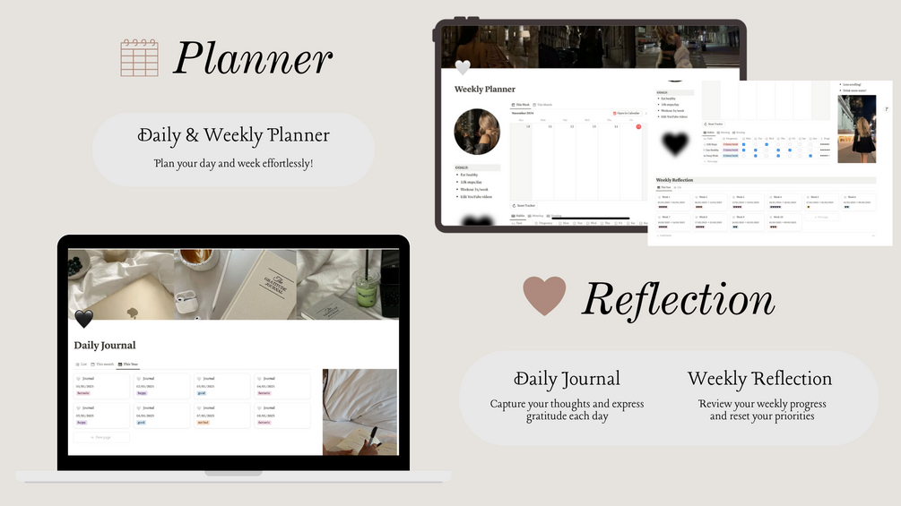 Your ultimate tool for mastering productivity, reflection, and goal achievement—all wrapped in a sleek, customizable and aesthetic design.