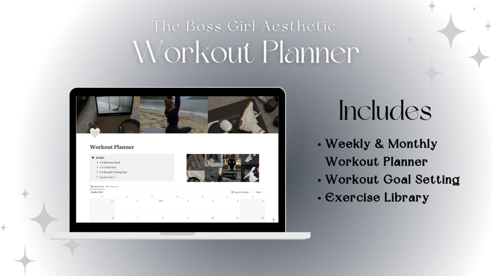 Stay consistent, stay motivated, and design your ideal workout routine with the Boss Girl Aesthetic Workout Planner.