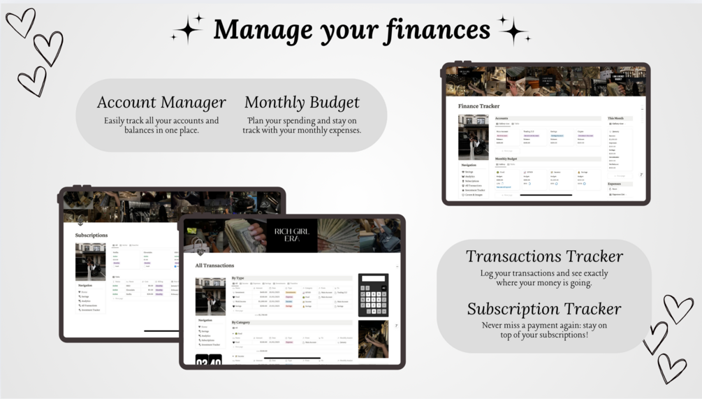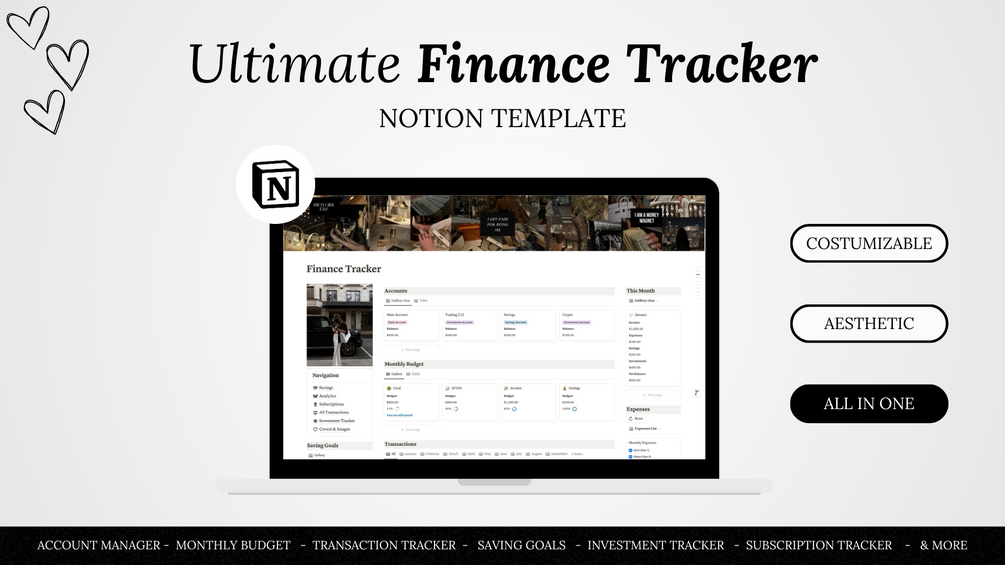 Take control of your finances with the Ultimate Finance Tracker—your aesthetic all-in-one notion template for organizing, managing, and achieving your financial goals.